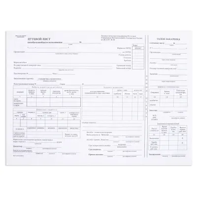 Бланк "Путевой лист автобуса необщего пользования". Двусторонний. Бланки изготовлены из офсетной бумаги и склеены в книгу по 100 листов.