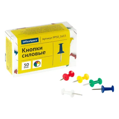 Кнопки силовые OfficeSpace, 50шт., ассорти, карт. упаковка