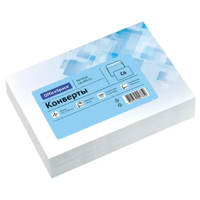 - Основные характеристики Конверт C6, OfficeSpace, 114*162мм, б/подсказа, б/окна, отр. лента, внутренняя запечатка, термоусадка: Материал: офсет, Цвет: белый, Вид товара: конверт почтовый, Тип заклеивания: отрывная лента. Полный список характеристик доступен на странице товара.