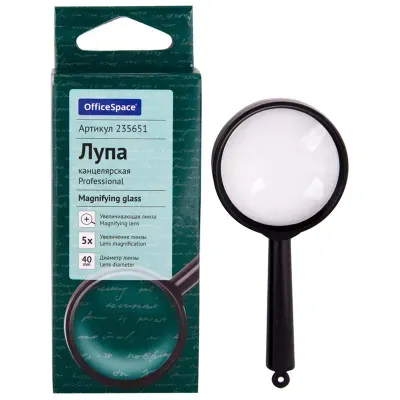 - Основные характеристики Лупа OfficeSpace, 40мм, 5-х кратное увеличение, карт. коробка, европодвес: Тип: Лупа, Диаметр: 40 мм, Кратность увеличения: 5, Материал оправы: Пластик. Полный список характеристик доступен на странице товара.