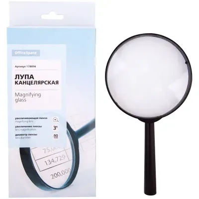 - Основные характеристики Лупа OfficeSpace, 90мм, 3-х кратное увеличение, карт. коробка, европодвес: Тип: Лупа, Диаметр: 90 мм, Кратность увеличения: 3, Материал оправы: Пластик. Полный список характеристик доступен на странице товара.