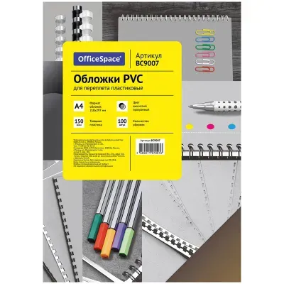 - Основные характеристики Обложка А4 OfficeSpace "PVC" 150мкм, прозрачный дымчатый пластик, 100л.: Материал: Пластик, Цвет: Прозрачный дымчатый, Тип: Обложка для переплета, Формат: А4. Полный список характеристик доступен на странице товара.