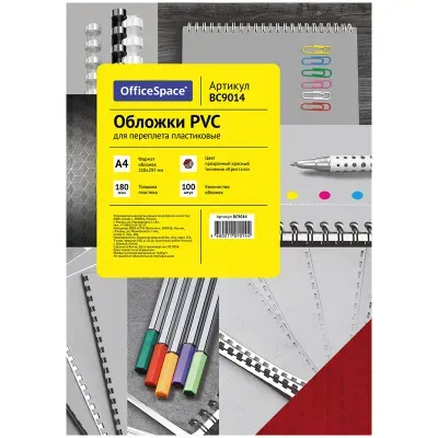 - Основные характеристики Обложка А4 OfficeSpace "PVC" 180мкм, "Кристалл" прозрачный красный пластик, 100л.: Материал: Пластик, Цвет: Прозрачный красный, Тип: Обложка для переплета, Формат: А4. Полный список характеристик доступен на странице товара.