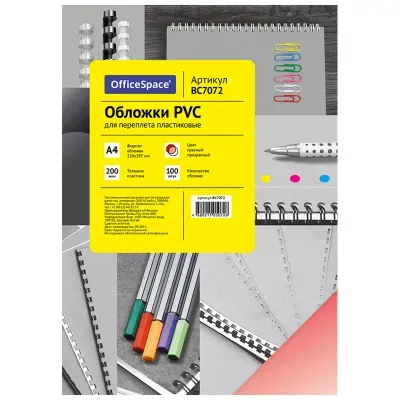 - Основные характеристики Обложка А4 OfficeSpace "PVC" 200мкм, прозрачный красный пластик, 100л.: Материал: Пластик, Цвет: Прозрачный красный, Тип: Обложка для переплета, Формат: А4. Полный список характеристик доступен на странице товара.