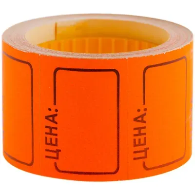 Ценник-лента. В упаковке 5 роликов по 200 штук. Размер наклейки - 3,5х2,5 см. Цвет - оранжевый.