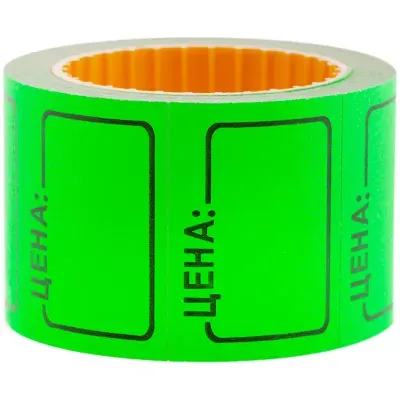 Ценник-лента. В упаковке 5 роликов по 200 штук. Размер наклейки - 3,5х2,5 см. Цвет - зеленый.