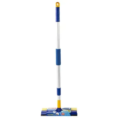 Выполняет две функции: мытье стеклянной поверхности с помощью спонжа и сгон воды резиновым лезвием. Телескопическая ручка упрощает уборку. Ручка выполнена из алюминия. Длина телескопической ручки - 76-125 см. Ширина рабочей части - 25 см.