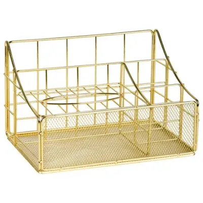 Изготовлен из металлической сетки. Имеет размеры 160х240х150 мм. Состоит из четырех секций. Благодаря своему стильному дизайну, удобству использования и надёжности, органайзер MONTE VITA станет незаменимым аксессуаром для вашего комфорта. Он обеспечит удобное хранение вашей канцелярии, косметики и прочих мелочей, а также лёгкий доступ к ним.