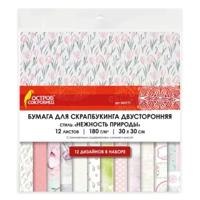 - Бумага для скрапбукинга 30х30 см "Нежность природы", двусторонняя, 12 листов, 12 дизайнов, 180 г/м2, ОСТРОВ СОКРОВИЩ, 662771 — это продукция бренда ОСТРОВ СОКРОВИЩ. В нашем магазине представлен широкий ассортимент товаров ОСТРОВ СОКРОВИЩ.