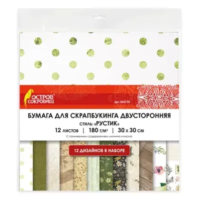- Бумага для скрапбукинга 30х30 см "Рустик", двусторонняя, 12 листов, 12 дизайнов, 180 г/м2, ОСТРОВ СОКРОВИЩ, 662770 — это продукция бренда ОСТРОВ СОКРОВИЩ. В нашем магазине представлен широкий ассортимент товаров ОСТРОВ СОКРОВИЩ.