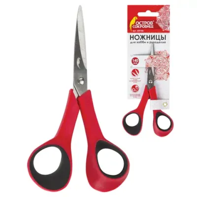 - Цена на Ножницы для хобби и рукоделия ОСТРОВ СОКРОВИЩ 140 мм, 3-х сторонняя заточка, красно-черные, 237105 составляет 228,55 рублей. При оптовом заказе цена от 190,99 рублей.