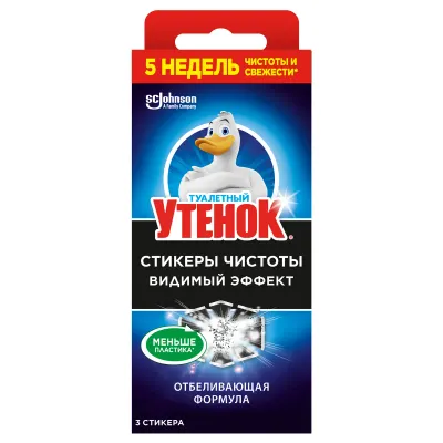 Освежитель/очиститель для унитаза/писсуара 3 шт. ТУАЛЕТНЫЙ УТЕНОК "Видимый эффект", стикер чистоты, 358978