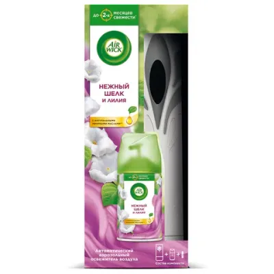 Освежитель воздуха автоматический 250 мл AIRWICK, диспенсер + сменный баллон, "Нежный шелк и лилия", 3222817