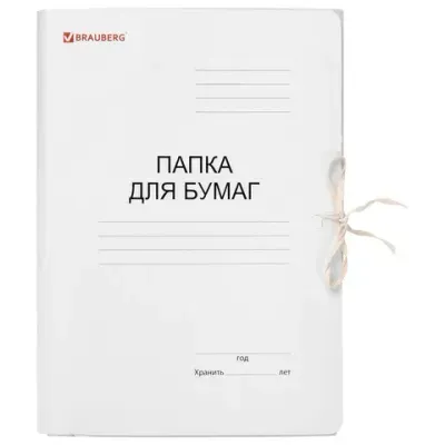 Папка для бумаг BRAUBERG на завязках с цельновырубными клапанами применяется для хранения бумаг и оперативной работы с документами сотрудниками госучреждений, общественных организаций, торговых предприятий и др.