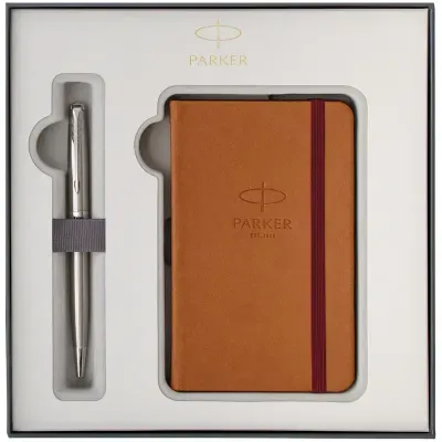 - Набор Parker: ручка шариковая "Sonnet Stainless Steel CT", 1,0мм и записная книжка, подар. уп. — какой бренд?