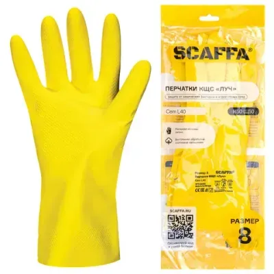 - Перчатки латексные SCAFFA "Луч", КЩС-2, хлопчатобумажное напыление, размер 8, M (средний), желтые, 00-01017717 — это продукция бренда SCAFFA. В нашем магазине представлен широкий ассортимент товаров SCAFFA.