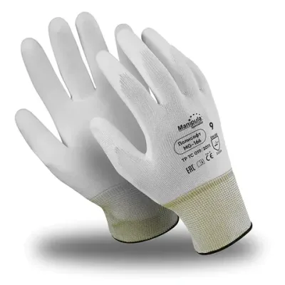 - Перчатки полиэфирные MANIPULA ПОЛИСОФТ, полиуретановое покрытие (облив), размер 9, L (большой), белые, MG-166 — какой бренд?