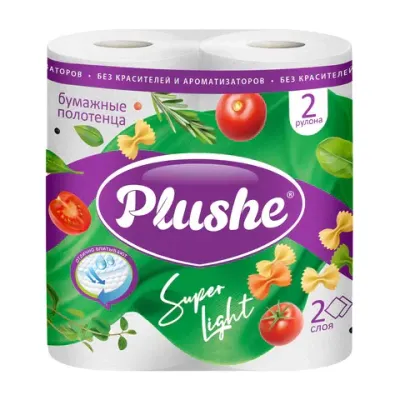 - Полотенца бумажные бытовые, спайка 2 шт., 2-слойные (2х10 м), PLUSHE "Super Light" (ПЛЮШЕ), 16732 — это продукция бренда PLUSHE. В нашем магазине представлен широкий ассортимент товаров PLUSHE.