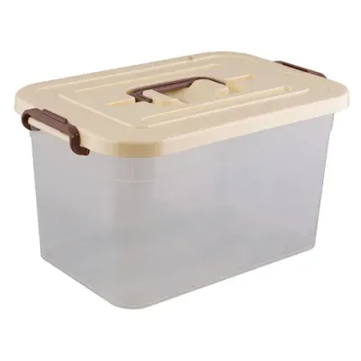Ящик-контейнер 10 л с КРЫШКОЙ НА ЗАЩЕЛКАХ И РУЧКОЙ, 19х35х23 см, пластик, прозрачный, крышка ассорти, 810, 438100065