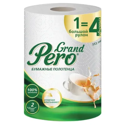 Двухслойные бумажные полотенца Grand PERO изготовлены из 100% целлюлозы. Большой рулон 44 метра заменяет 4 стандартных рулона. Обладает прекрасными впитывающими свойствами. Идеально подходит для использования дома и в офисе.