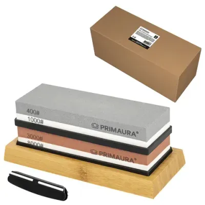 Точильный камень водный, КОМПЛЕКТ 2 шт., НАБОР 6 предметов, 400/1000/3000/8000 грит, PRIMAURA (ПРИМАУРА), 701628