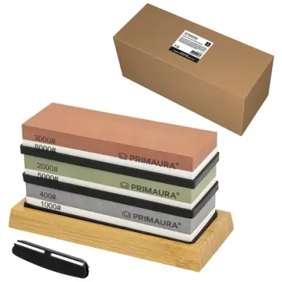 Точильный камень водный, КОМПЛЕКТ 3 шт., НАБОР 8 предметов, 400/1000/2000/3000/5000/8000 грит, PRIMAURA (ПРИМАУРА), 701629