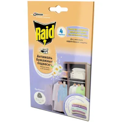 - Бумажные подвески от моли Raid "Антимоль", с ароматом весенних цветов, 4шт. — это продукция бренда Raid. В нашем магазине представлен широкий ассортимент товаров Raid.