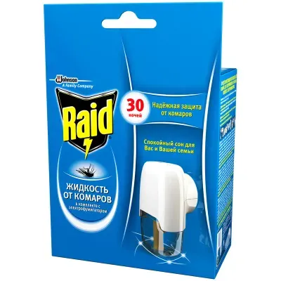 - Комплект электрофумигатор + жидкость от комаров Raid на 30 ночей, "Без запаха", картонная коробка — это продукция бренда Raid. В нашем магазине представлен широкий ассортимент товаров Raid.