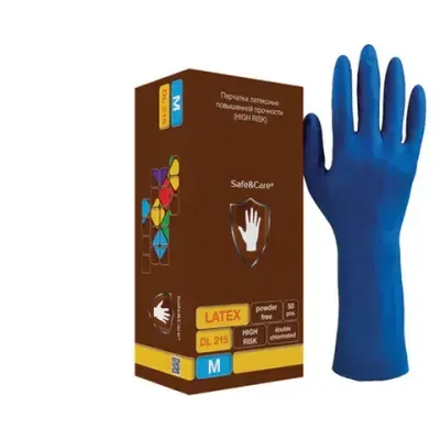 - Перчатки латексные смотровые 25 пар (50 штук), размер 7-8, M (средний), повышенной прочности, SAFE&CARE High Risk DL215 — это продукция бренда SAFE&CARE. В нашем магазине представлен широкий ассортимент товаров SAFE&CARE.