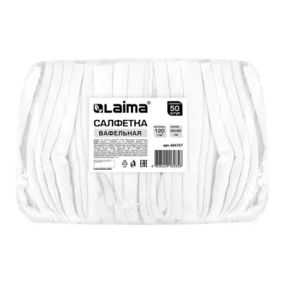 - Салфетки ВАФЕЛЬНЫЕ отбеленные, 40х80 см, плотность 120 г/м2, КОМПЛЕКТ 50 шт., бюджет LAIMA, 604757 — это продукция бренда LAIMA. В нашем магазине представлен широкий ассортимент товаров LAIMA.