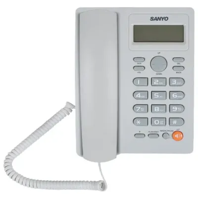 Стационарный телефонный аппарат Sanyo RA-S306W это проводной аналоговый телефон с необходимым набором функций и стильным дизайном. Его отличает 16-тизначный ЖК-дисплей с часами и определение номера вызывающего абонента с памятью на 50 входящих номеров.