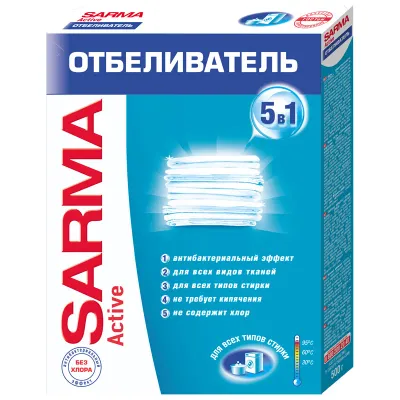 - Отбеливатель Sarma "Актив", порошок, 500г, 5056 (ПОД ЗАКАЗ) — это продукция бренда Sarma. В нашем магазине представлен широкий ассортимент товаров Sarma.