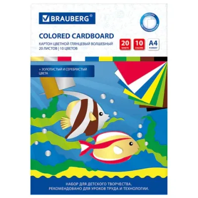 - Основные характеристики Картон цветной А4 МЕЛОВАННЫЙ ВОЛШЕБНЫЙ, 20 листов, 10 цветов, в папке, BRAUBERG, 200х290 мм, 113546: Дизайн: Рыбки, Количество цветов: 10, Тип картона: мелованный, Тип картона: с улучшенной прокраской. Полный список характеристик доступен на странице товара.