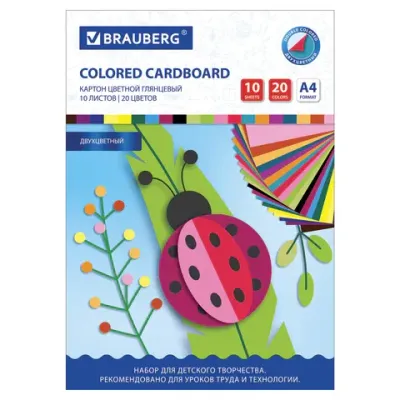 - Картон цветной А4 2-цветный МЕЛОВАННЫЙ, 10 листов, 20 цветов, в папке, BRAUBERG, 200х290 мм, 113553 — это продукция бренда BRAUBERG. В нашем магазине представлен широкий ассортимент товаров BRAUBERG.