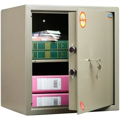 Сейф изготовлен из стали. Лицевая панель увеличенной толщины 5 мм, боковые стенки с толщиной металла 2 мм. Сейф комплектуется ключевым замком KABA MAUER (Германия), имеющим защиту от высверливания и вращающиеся ригеля. Стойкое полимерное порошковое покрытие защищает от царапин и ржавчины. Конструкция предусматривает возможность анкерного крепления к полу и стене (анкерный болт в комплект не входит). Расширенная гарантия – 5 лет. Высокие стандарты качества продукции компании "Промет" дости
