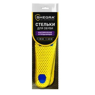 - Стельки для обуви АНАТОМИЧЕСКИЕ СУПЕРДЫШАЩИЕ, материал EVA, размер RU 39-45 / EU 40-46, с линиями выреза, SHEGRA (ШЕГРА), 700749 — это продукция бренда SHEGRA. В нашем магазине представлен широкий ассортимент товаров SHEGRA.
