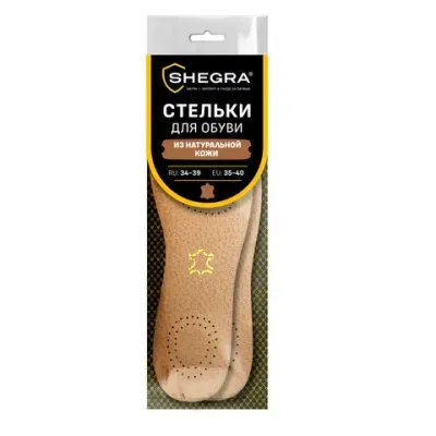 - Стельки для обуви из натуральной кожи с линиями выреза, с двумя амортизаторами, размер RU 34-39 / EU 35-40, SHEGRA (ШЕГРА), 700763 — это продукция бренда SHEGRA. В нашем магазине представлен широкий ассортимент товаров SHEGRA.