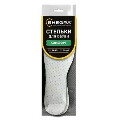 - Стельки для обуви КОМФОРТ, УНИВЕРСАЛЬНЫЙ размер RU 34-45 / EU 35-46 с линиями выреза, SHEGRA (ШЕГРА), 700733 — это продукция бренда SHEGRA. В нашем магазине представлен широкий ассортимент товаров SHEGRA.
