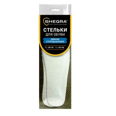 - Стельки для обуви ЗИМНИЕ СУПЕРДЫШАЩИЕ, материал EVA, размер RU 39-45 / EU 40-46, с линиями выреза, SHEGRA (ШЕГРА), 700756 — это продукция бренда SHEGRA. В нашем магазине представлен широкий ассортимент товаров SHEGRA.