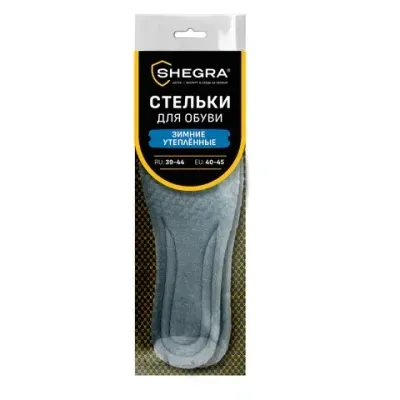 - Цена на Стельки для обуви ЗИМНИЕ УТЕПЛЕННЫЕ, материал PU PRO, размер RU 39-44 / EU 40-45, с линиями выреза, SHEGRA (ШЕГРА), 700758 составляет 195,93 рублей. При оптовом заказе цена от 158,62 рублей.