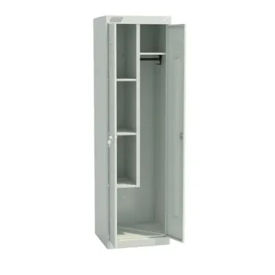 Хозяйственный шкаф универсального назначения. Предназначен для хранения сменной одежды в офисных, производственных, спортивных помещениях, кроме того, может использоваться для хранения хозинвентаря. Возможна установка в помещениях с повышенной влажностью.