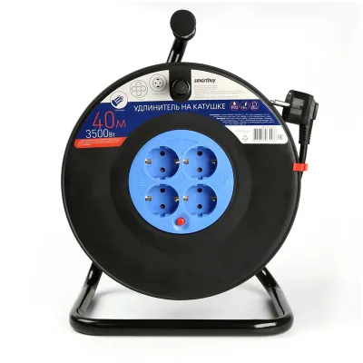 - Основные характеристики Удлинитель на катушке силовой Smart Buy, 40 метров, с заземлением, предохранитель, 4 гнезда, ПВС 3*1,5, 16А/3,5кВт: Материал корпуса: Пластик ABS, Цвет: Синий, черный, Тип: Удлинитель силовой, Вид: Бытовой. Полный список характеристик доступен на странице товара.