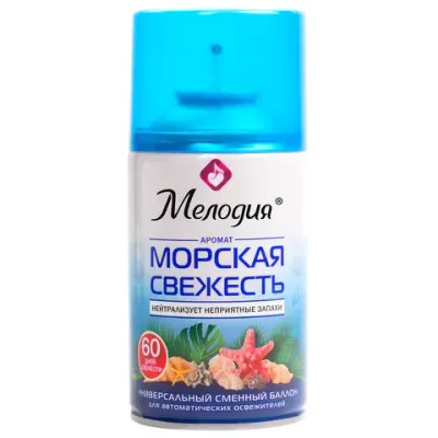 - Сменный баллон 250 мл МЕЛОДИЯ "Морская свежесть", для автоматических освежителелей, универсальный, 605226 — это продукция бренда МЕЛОДИЯ. В нашем магазине представлен широкий ассортимент товаров МЕЛОДИЯ.