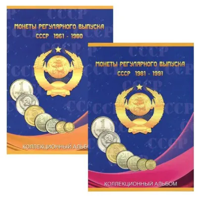 Альбом-планшет для монет СССР регулярного выпуска в двух томах, 1961-1980гг. и 1981-1991гг.