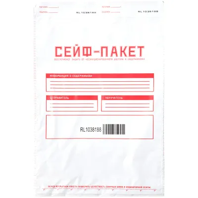 Специальные пакеты с индикацией попытки вскрытия. Любые механические воздействия, заморозка, нагревание, воздействия химикатами и т.п. оставляют неустранимые заметные следы. ПАКЕТ-СЕЙФ изготовлен из непрозрачного трехслойного полиэтилена. Поверхность пакета светлая, внутренний слой тёмный, что не позволяет видеть содержимое пакета. ПАКЕТ-СЕЙФ имеет индивидуальный номер и штрих-код, прозрачный клапан для сопроводительной документации и отрывные номерные купоны для передачи пакета через третьих лиц. Усиленные сварные швы шириной 2 мм или 4 мм с нанесением микро рисунка повышают прочностные и защитные характеристики пакета. ПАКЕТ-СЕЙФ оборудован специальной защитной клейкой лентой, при попытке вскрытия которой проявляется надпись. Каждый пакет имеет свой индивидуальный, не повторяющийся номер, который дублируется на отрывных квитанциях и штрих-коде.