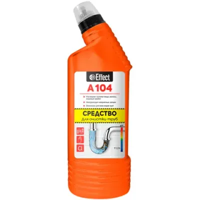 - Средство для прочистки канализационных труб 750 мл, EFFECT "Alfa 104", щелочное, 26211 — это продукция бренда EFFECT. В нашем магазине представлен широкий ассортимент товаров EFFECT.