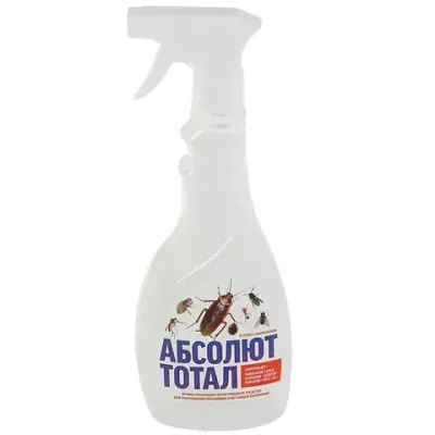 "АБСОЛЮТ ТОТАЛ" - профессиональная разработка в форме готового раствора для самостоятельного применения в быту. Предназначен для уничтожения тараканов, муравьев, клопов, блох, крысиных клещей, мух, комаров, ос.