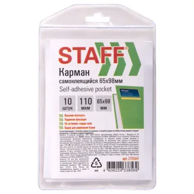 - Карманы самоклеящиеся для визиток и персонализации 65х98 мм, КОМПЛЕКТ 10 шт., STAFF, 270569 — это продукция бренда STAFF. В нашем магазине представлен широкий ассортимент товаров STAFF.