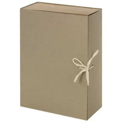 Вмещает до 900 листов формата А4, в том числе картонные скоросшиватели, папки с завязками, обложки “Дело”. Изготовлен из переплетного картона толщиной 1,25 мм. В закрытом виде фиксируется с помощью двух хлопчатобумажных завязок. Способен выдержать 5 кг. Имеется откидная крышка. Выполнен в сером цвете. Размер - 330х100х240 мм. Поставляется в разобранном виде.