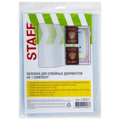 - Папка-органайзер, обложка семейная для 1-го комплекта документов, А4, ПВХ, матовая, STAFF, 238337 — это продукция бренда STAFF. В нашем магазине представлен широкий ассортимент товаров STAFF.